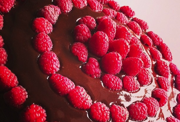 Fantastisk smak av bringebær og sjokolade i samme dessert.